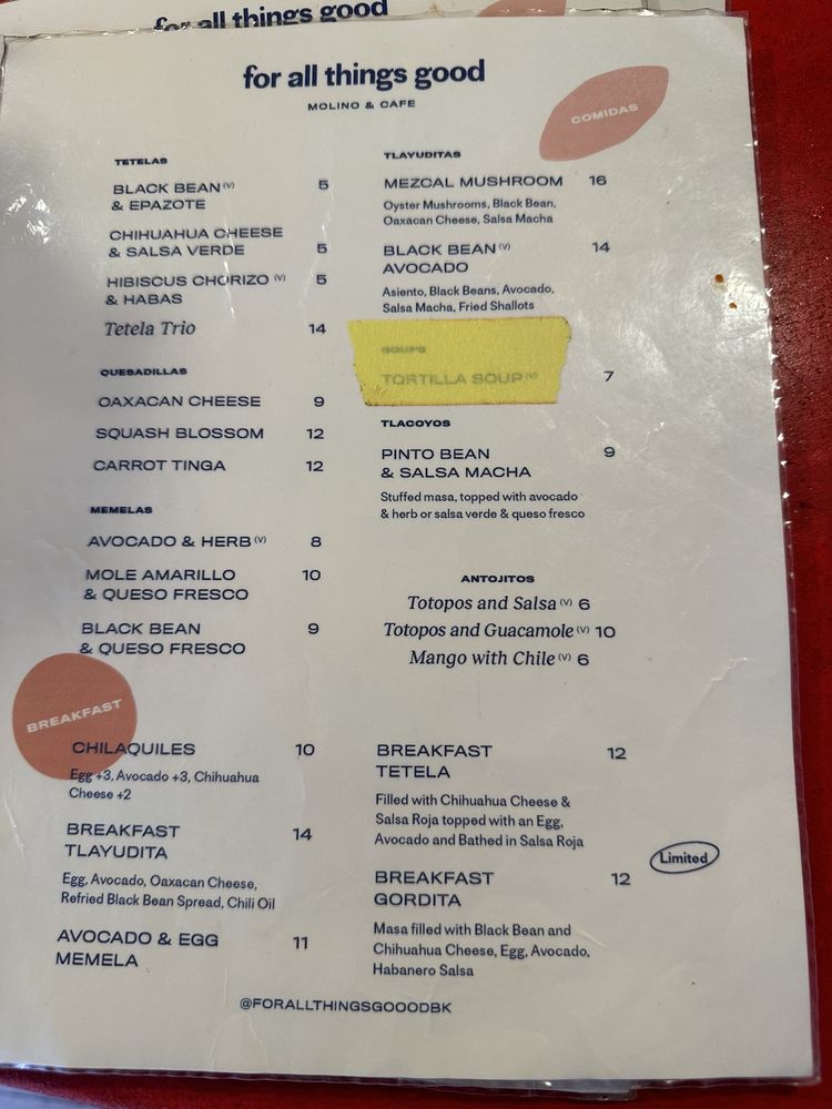 Welcome to For All Things Good, a gem in Brooklyn that brings the vibrant flavors of Mexican cuisine to life in a casual café setting. Located at 343 Franklin Ave, this locale marries authenticity with innovation, showcasing an array of dishes crafted from homemade masa and tortillas.
